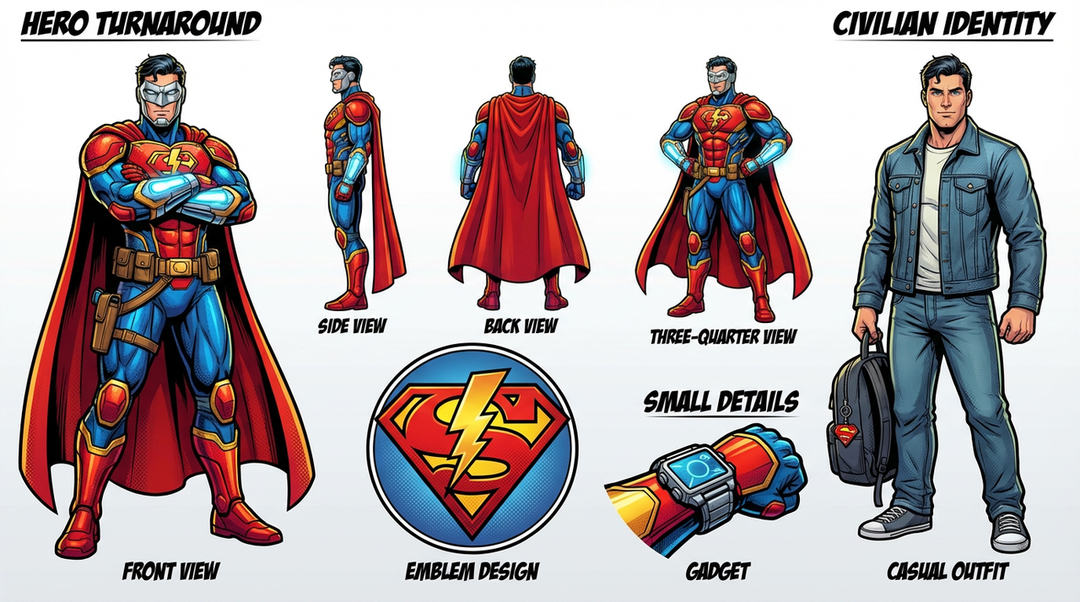 Generate clean, consistent character sheets, expression sheets, turnarounds (front/side/back), and costume variations. Export high-resolution results that feel production-ready, ideal for animation reference, comic panels, character prototypes, and game character design in seconds, without spending hours on redraws. Just describe and create with our free character sheet maker.